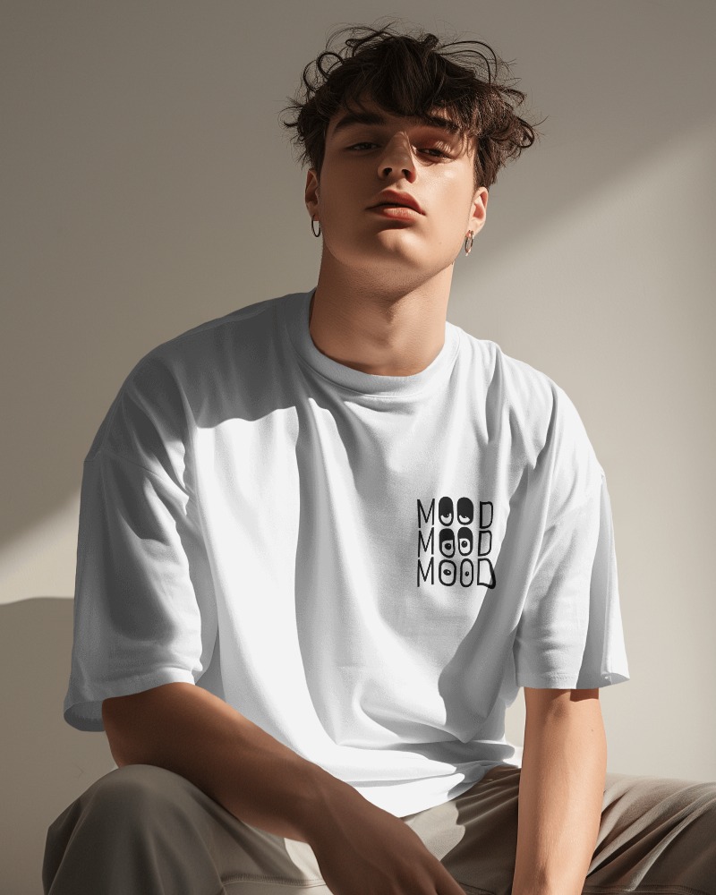 Be the first to review “Mood White color Oversized back Printed Tshirt”